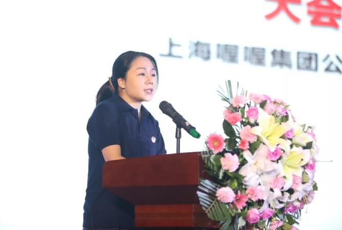 喔喔食品事业部总经理朱凤仪讲话