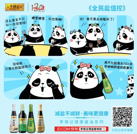 如上提到的健康酱油系列,李锦记在推广上秀了一波“鲜气”十足的“盐值”操作,将场景化、趣味化的内容与产品信息相融合,再通过多维度的渠道进行传播,可见李锦记在维持一贯的市场口碑的同时,也在拉近与年轻消费群体的距离,与之形成更高效的沟通。