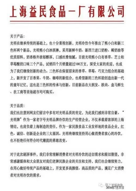上海光明于 7 月 21 日发出关于“买不到货”的声明
