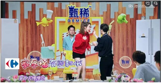结合甄稀冰淇淋花式口播、信息条及花字,不断露出家乐福售卖的信息;明星食用甄稀冰淇淋场景,延续剧情花字显示“花式投喂,家乐福有同款”,引导和提示消费者购买行为。