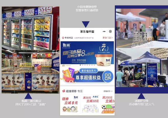 借力节目热度,节目播放期间,甄稀冰淇淋在家乐福中国小程序同步发放节目同款优惠券。