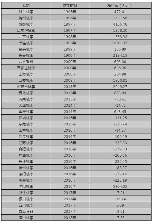 分解来看,今年上半年,在桃李面包的34家主要控股参股公司中,营业收入贡献突出的有沈阳桃李3.94亿元、成都桃李1.97亿元、石家庄桃李0.97亿元等,而沈阳桃李、成都桃李、长春桃李、大连桃李等公司实现净利润均在2000万元以上。