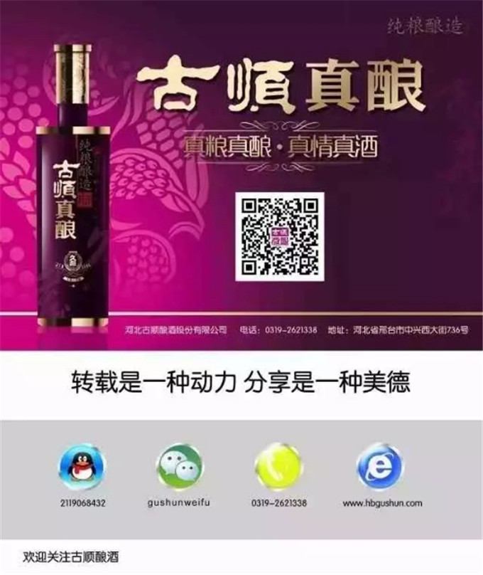 一系列的荣誉,是对古顺酒品质的肯定,也是一种鞭策。继往开来,古顺酿酒将在品质与研发上加大力度,继续倡导精益求精的“工匠精神”,为振兴冀酒贡献力量!