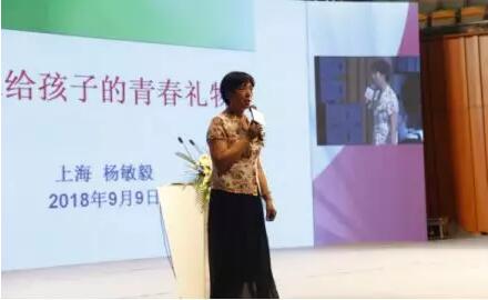 来自上海市的正高级教师(教授级)杨敏毅就父母在青春期的孩子的角色定位和相处的方法,做了名为《家长给孩子的青春礼物》的主题演讲。