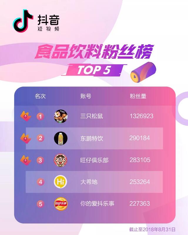 首期榜单统计周期为8月1日~8月31日,让我们来看看食品饮料行业的排名情况: