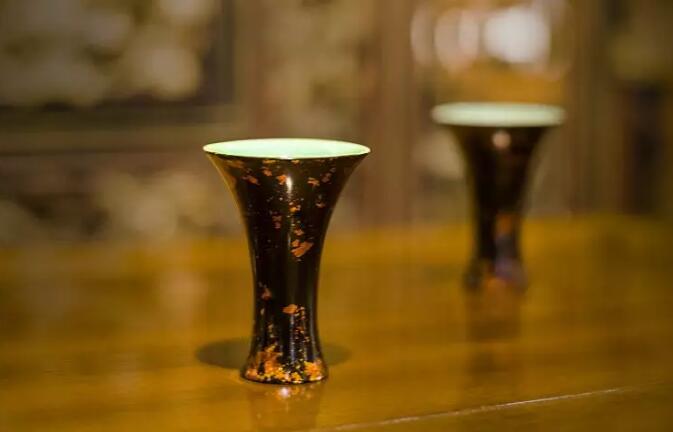 6、成都漆器专属酒杯,文化瑰宝:酒杯也大有来头,由成都漆艺代表性传承人手工打造“水井坊博物馆壹号”专属酒杯,融汇成都漆艺之华丽,黑金交织间,流光溢彩。