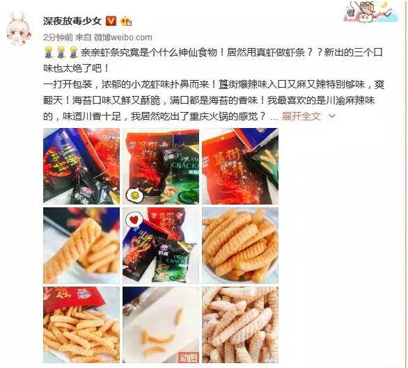 事实上,对于亲亲虾条来说,此次全新升级先以“网红爆款”一鸣惊人,尤其是三种小龙虾口味备受年轻人追捧。与此同时,食物又是一种很好的情感介质。亲亲虾条这一套营销组合拳,赋予了产品更多的社交基因,无论是同事、闺蜜、同学,都可以通过亲亲虾条这一社交介质,更好地表达情感、建立情感、交流情感。
