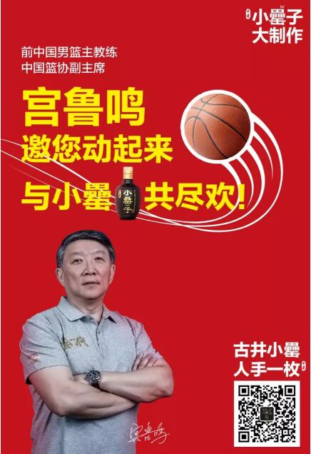 在当下各种跨界整合思维引导下,古井集团大胆创新尝试,把国人生活中不可少的“白酒”和象征着拼搏与活力的“篮球运动”进行跨界结合,特邀前中国男篮主教练、中国篮协副主席宫鲁鸣先生出任战略单品——古井小罍代言人,通过篮球这个标签聚集青年运动潮流,传达励志坚持、团结协作、勇敢追求梦想的向上价值观。