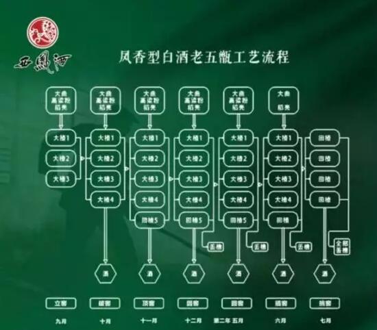 53度旗帜西凤酒的卓越品质还源自其独特的酿造工艺。53度西凤酒,传承于西凤人世代坚守的五甑之法,是岁月的智慧结晶。老五甑工艺,甑指的是酒甑,五甑指的是每一个窖池装满的粮醅恰好可以装满五个酒甑,其中四甑大楂,一甑插糠。西凤酒采用续楂配料老五甑工艺(连续发酵法),生产周期为一年。一般是头年的9月份(公历)立窖,来年的7月份(公历)挑窖,全过程分为立窖、破窖、顶窖、圆窖、插窖及挑窖六个阶段。