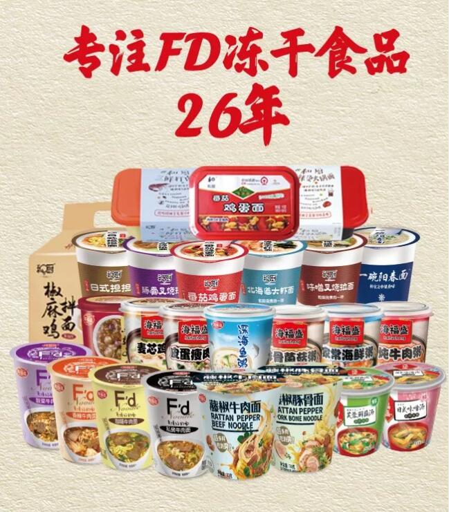 新三和拥有在全亚洲实属先进的 FD 食品研发中心和团队,专注 FD 冻干技术 26 年,国内大江南北的高铁动车上均有销售。此外,目前市面上大多数 FD 冻干面及冻干粥贴牌均出自新三和公司。