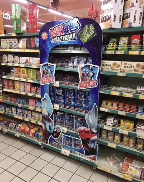 当然,在创意陈列方面,金添动漫在终端的优势同样明显。经过奥特蛋和伊脆薯条的大练兵,如今经销商在推添乐卡通王海苔时更是驾轻就熟,全国各地涌现出不断陈列堆头的样板案例,线上线下联动发力,营造出火热的热销氛围。