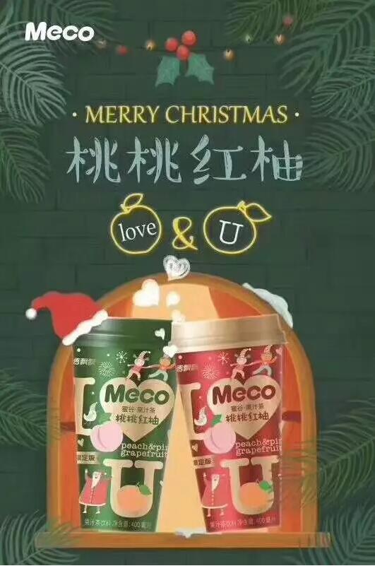 近日,香飘飘“Meco蜜谷”系列再推轻奶茶新品,蕉蕉绿妍、白桃乌龙两种新口味上市。产品以香蕉+绿茶、白桃+乌龙茶搭配,规格为400ml/杯,终端零售价为6元。除此之外,在圣诞来临之际,香飘飘还推出了果汁茶的圣诞限量款,从包装来看,产品瓶身上充满了圣诞的元素,特别契合节日氛围。