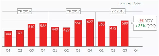2018年,老板仔海苔前三季度销售额为42亿泰铢,约合人民币8.8亿元;第三季度实现总销售收入15.18亿泰铢,约合人民币3.19亿元,其中,中国市场收入为5.89亿泰铢,占比39%,约合人民币1.24亿元,中国仍然是老板仔主要的出口市场。