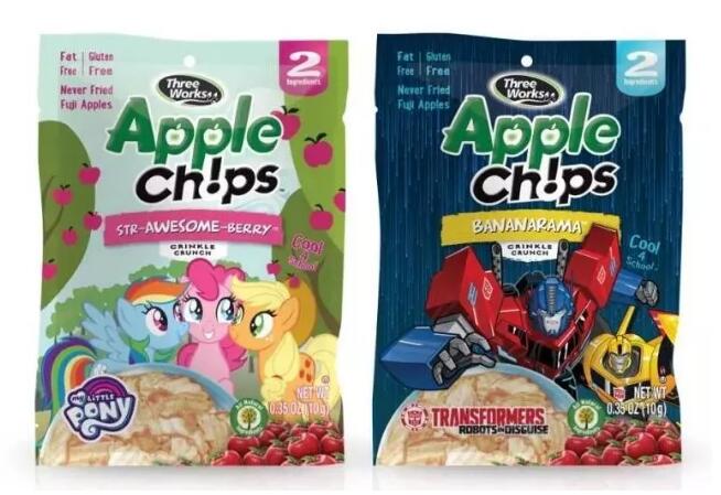 ThreeWorks公司的Apple Chips Snacky Pak是一款苹果薯片,它的口味和嘎吱作响的口感就像专为儿童设计的口味薯片。