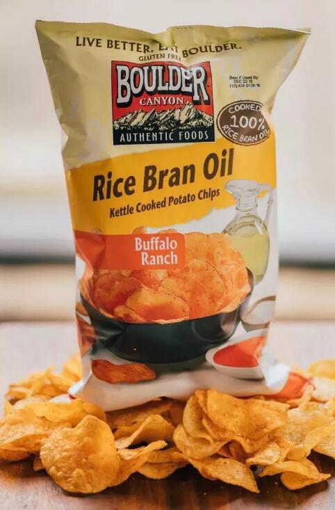 简单食材快餐品牌Boulder Canyon Authentic Foods公司推出了两种新口味的米糠油薯片系列。是一款用米糠油烹饪的薯片,为消费者提供一种多不饱和脂肪和单不饱和脂肪均衡的零食。这种油是从糙米的外层提取出来的。