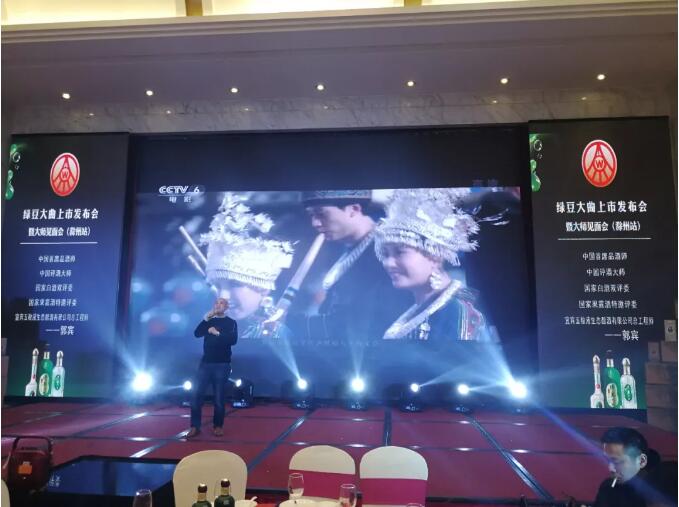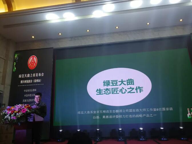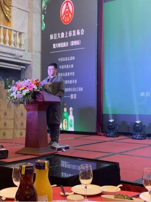 在轻松欢快的开场舞后,郭总工登台,详细地为来宾介绍了五粮液集团中国 酒王的地位、浓香基酒优势;五粮液生态酿酒公司的优势;绿豆大曲的原料、基酒、配方、工艺及产品特点,带领众人揭开绿豆大曲作为中国健康白酒领拓者的传奇面纱: