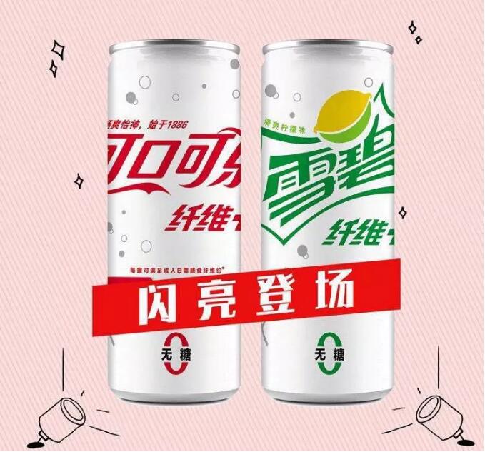 “雪碧纤维+”与“可口可乐纤维+”分别于2018年3月与8月推出,产品包装以白色为主,时尚亮眼,除了不含糖零负担之外,每瓶饮料还含有7.5克的膳食纤维,可满足成人日需约30%的膳食纤维需求,而膳食纤维则有助于维持正常的肠道功能,利于人体健康。