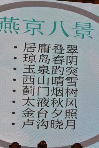 根据真实的史料记载,作为较能代表北京自然和人文风光的“燕京八景”,本来并无统一的指称,清乾隆十六年,乾隆皇帝亲自统一、更名,并附上御刻、御诗,最终确定了“太液秋风、西山晴雪、卢沟晓月、居庸叠翠、琼岛春阴、玉泉趵突、蓟门烟树、金台夕照”八景。同时,清代画家张若澄完成乾隆御命,以“八景”为蓝本,创作了写实的《燕京八景图》画本。