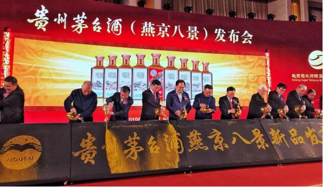 燕京八景茅台酒出现在茅台酱香酒公司2018年度的经销商联谊会期。在12月21日下午,茅台公司举办了猪年生肖酒的统一发布会。本次发布会上,除了猪年生肖茅台酒、猪年生肖茅台王子酒、猪年生肖贵州大曲、猪年赖茅酒外,一款名叫“燕京八景”的个性化茅台酒也一同与“猪茅”们亮相。