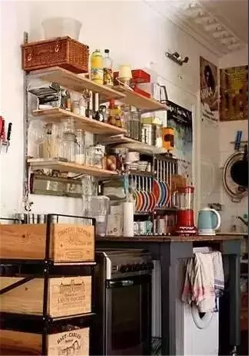 定制与酒箱尺寸合适的铁艺,将酒箱放入其中,非常适合摆在厨房、洗浴这些需要放置大量物品的地方。