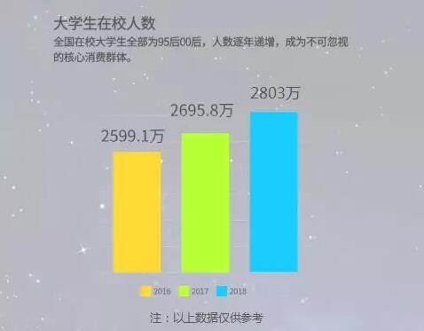 中国在校大学生一共约2803万人,大学生消费支出较多的三项是:吃、人际交往、服装配饰。95后的成长伴随着中国互联网发展的全部历程,互联网影响了他们的社交、消费、娱乐等各个方面,95后00后更是成为快消品行业一直追求与年轻消费者互动的群体。猫盒以“探索年轻态度,分享潮趣生活”为理念,通过95后和00后消费群体,让产品一上市,就打开在年轻一族的群体曝光度,使品牌更具年轻化。