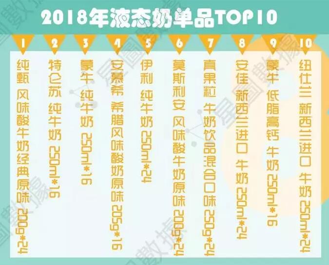 近日,新锐互联网大数据服务公司星图数据就公布了2018年线上电商平台液态奶“销售战绩”。监测范围涵盖高端纯牛奶、功能奶、普通纯牛奶、常温酸奶、风味奶、牛奶饮料、普通酸味奶、常温乳酸菌八大品类,用实际数据说明了液态奶行业2018年全年的销售情况。