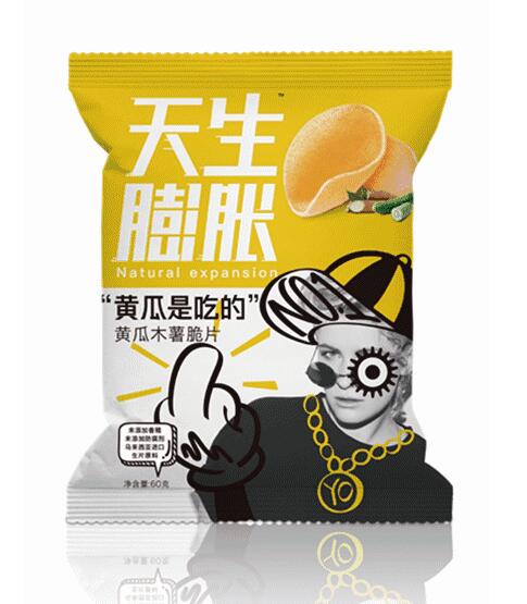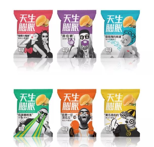 这是一个看脸的时代,包装设计对终端销量的影响越来越大。“天生膨胀”木薯脆片包装上无论是时尚靓妹、个性帅哥,还是可爱宝宝,各种人物形象都十分活泼搞怪,并借此不断向消费者传递着个性、健康、活力的品牌理念。