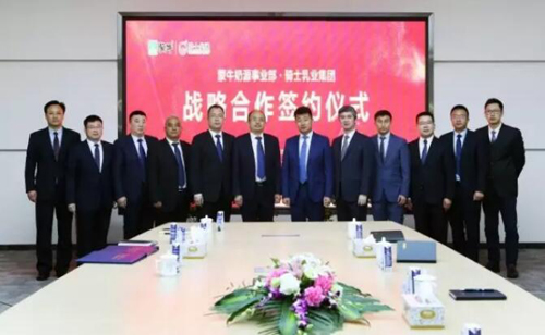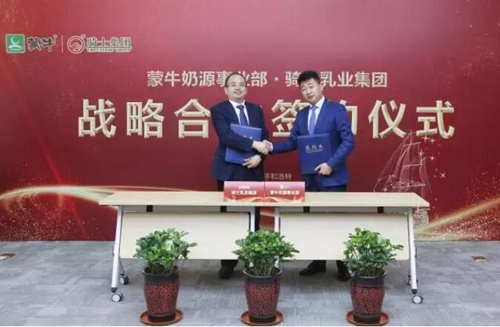 3 月 22 日,蒙牛集团奶源事业部与内蒙古骑士集团股份有限公司战略合作签约仪式在和林格尔蒙牛集团总部举行。蒙牛集团助理副总裁、奶源事业部负责人赵杰军与骑士集团董事长兼总裁党涌涛代表双方签署战略合作协议。