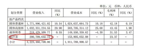 从产品分类来看,杯装奶茶整体销售收入达32.23亿元,其中,经典系列营收17.71亿元,好料系列营收10.32亿。值得注意的是,液态奶茶销售收入达2.18亿元,其中Meco蜜谷果汁茶营收达2亿元,市场表现极为亮眼。