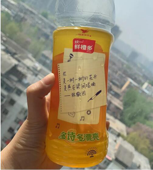 “统一鲜橙多”围绕新生代消费者,持续品牌年轻化,以诗词媒介向消费者传达“漂亮”的品牌主张,联合年轻人喜欢的网络平台推出“漂亮诗社”活动,增强与消费者的互动;呼应线下开展的“少年爱吟唱,多诗多漂亮”系列活动,拉近与年轻消费者的距离。同时延伸产品规格,满足不同消费场景的需求,推出罐装315ml鲜橙多,打开餐饮宴席市场和礼盒市场。
