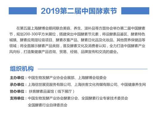 而协会及委员会全力支持召开的“2019第五届上海酵博会之第二届中国酵素节”展览活动将于2019年9月24-26日在上海新国际中心隆重召开。由中国生物发酵产业协会主办,上海酵博会组委会与上海扶客文化传媒有限公司承办,扶客酵素品鉴馆、中国健康养生网协办,获得中国酵素城、养生天下、山东天随、恒利康、大汉酵素、中山生津、山东飞龙、佳联、海济润生、六和果、浙江藴本、山东博华、良田集团、蔻拉蜜、美瘦生物、西沙诺丽等多家知名伙伴支持,及腾讯、搜狐、新浪等30多家知名媒体支持。规模十分庞大,欢迎全球范围的营养健康、美容、行业从业者、爱好者等伙伴们前来参加。