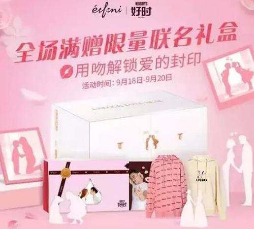 2018年9月份,好时在官方微博发布消息,其联手年轻女装企业伊芙丽推出了定制联名礼盒,礼盒内含印有Kisses字样的卫衣与好时Kisses巧克力,以此来赢得更多年轻女性消费者的喜好。