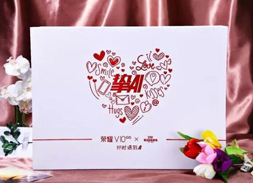 除此之外,好时还与有“2018年真AI旗舰”之称的荣耀V10一同借势520告白日,联合打造了一款名为“挚AI”的联名礼盒,持续为爱证言。这款礼盒内具体包括一台4GB+64GB的荣耀V10手机及一盒好时之吻心形创意拼制巧克力,浪漫的节日元素,也让这款礼盒由内而外都散发着一股浓郁的有爱格调,绝对是520的告白好物。
