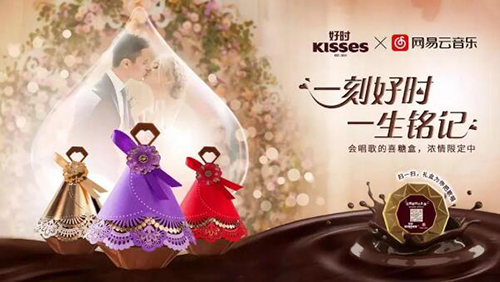 2018年4月份,好时携手全球婚庆专业人士以及网易云音乐联名推出小臻钻璀璨系列,“会唱歌的喜糖盒”隆重耀目登场。据了解,只需轻扫糖盒底部二维码,美妙音乐即刻环绕甜蜜婚曲顷刻开启,尤为契合婚庆场景。