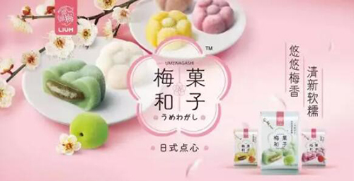 这是一款日式点心,优质原果填满菓子内心,辅以梅汁精华,自然清香,细腻更Q弹,率先推出了梅和芒果、梅和白桃、梅和草莓等8种口味。