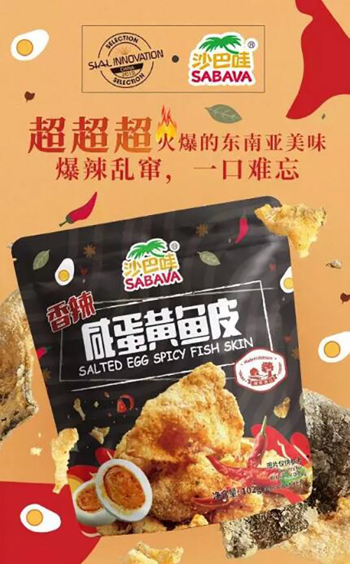 经小编多方探听,2019年沙巴哇即将上线系列新品,其中两款产品还成功进入2019年SIAL创新大赛前十名,咸蛋黄口味、鱼皮、跨界成关键标签。