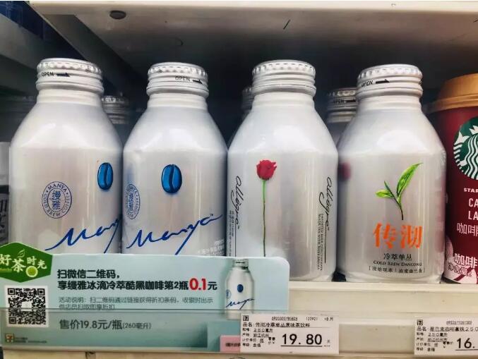 继恬蜜光年和唤醒后,统一再度推出缦雅Manya”咖啡、“传沏”茶以及“allègre ”奶茶3款价格逼近20元的“天价”饮料新品。根据我们在上海7-11中看到的产品信息,缦雅咖啡和传沏茶定价均为19.8元/瓶,目前前者正在进行第二瓶0.1元的促销活动。