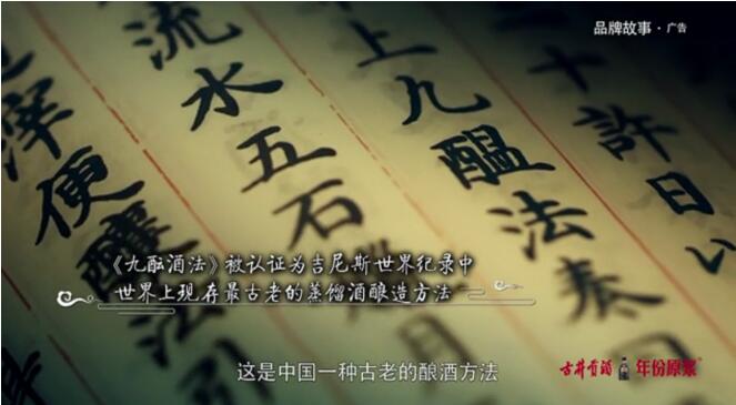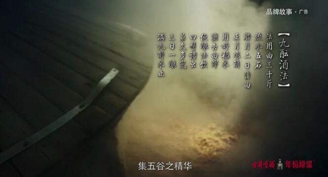 此次推出的品牌故事宣传片以“千年古方 九酝酒法”为主题,讲述古井贡酒传承千年的酿造技艺——九酝酒法。五千多年前,物阜民丰的亳州就已经出现了酿酒活动。三千多年前,商汤王定都于亳,开启了以酒祭祀的传统。东汉末年,曹操携佳酿“九酝春酒”进贡汉献帝,始成中华贡酒。
