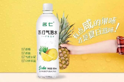 除了推出升级版苏打水饮料,这次名仁还玩起了“混搭”,将时下流行的苏打水与气泡水进行融合,推出了一款名仁苏打气泡水新品。它既是苏打水又是气泡水,小苏打的存在同时,又不失气泡的冲击口感,菠萝、柠檬、水蜜桃三种浓郁的水果口味,更受年轻消费者青睐。