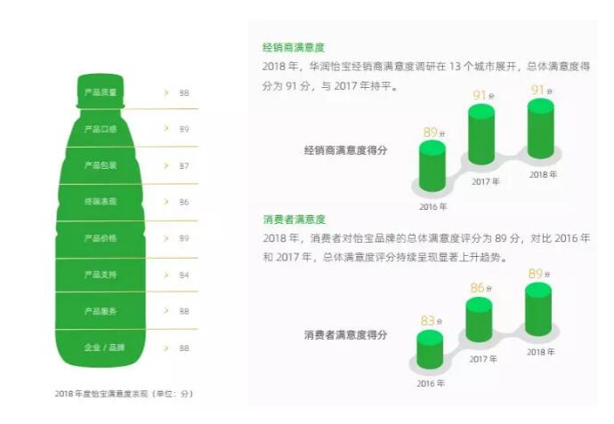 此外,2018年华润怡宝经销商满意度达到91分,消费者满意度达到89分。