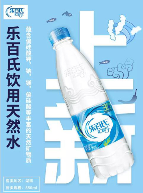 7月,乐百氏饮用天然水上新。区隔4月推出的纯净水,乐百氏天然水新品采用全新蔚蓝包装,在淡雅和明快中透露出一丝清凉。
