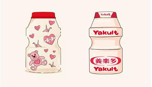 在乳酸饮料之中,养乐多自1953年启用小红瓶包装以来,一卖就是67年。发展到今天已经具有很高的大众认知度,即便把所有产品信息去掉,仅凭瓶身线条依旧可以一眼辨认出来。