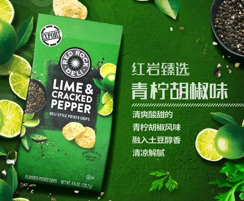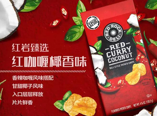 RedRock红岩薯片推出的口味也很高级,比如意大利香脂醋味、洋葱乳酪味、甜辣椒酸奶油味、蜂蜜酱油鸡味等,目前中国有红咖喱椰香味和青柠胡椒味两种口味,红咖喱椰香味采用香辣咖喱风味搭配甘甜椰子风味;青柠胡椒风味则是将酸甜青柠融入土豆中,清香解腻。天猫售价为19.9元/138.2g。
