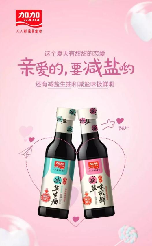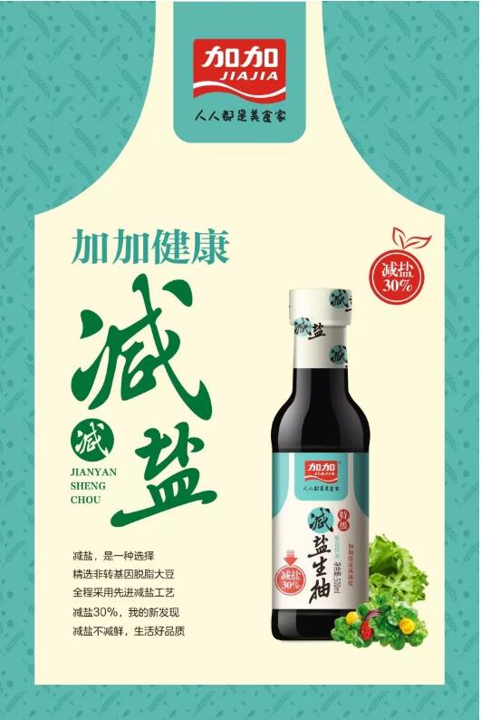 几年前,加加食品集团股份有限公司(以下简称“加加食品”)顺应大健康趋势,提出“淡酱油”战略。近日,加加食品创新培育出减盐生抽系列产品,包括减盐生抽、减盐味极鲜、减盐金标生抽三大主力,组成“减盐矩阵”。