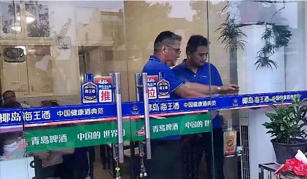 三、生动化到每家店:为营造椰岛海王酒“蓝色风暴”氛围,只要是有椰岛海王酒产品的店椰岛团队都进行了生动化氛围的营造。根据终端店的经营面积、规模大小,为店内设计布置不少于三种促销物料必须陈列,用统一标准严格要求,打造一体化、标准化、流程化的生动化氛围布置。