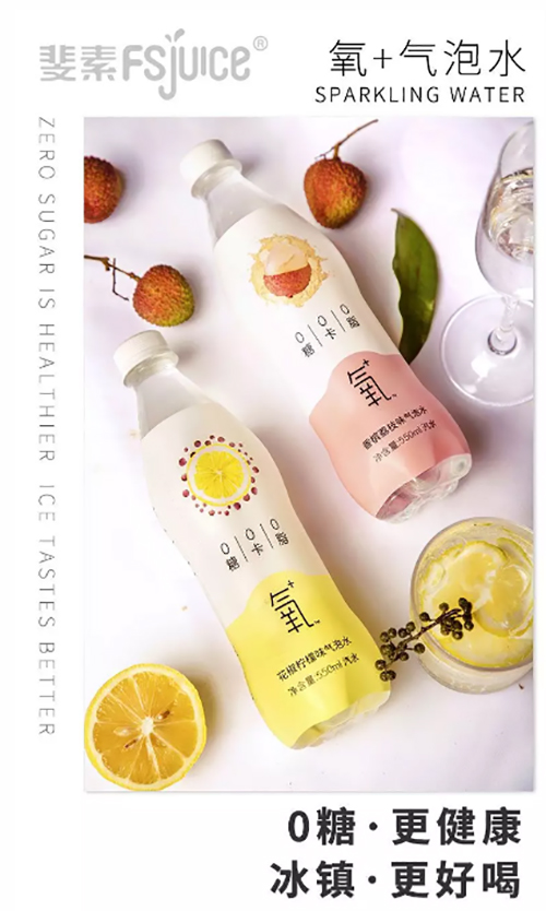 主打健康饮品的“斐素”推出的“氧+”气泡水主打“无糖更健康”的概念,产品从罗汉果中提取罗汉果甜苷原料,替代白砂糖和其他人工甜味剂,能够在不影响血糖的同时,减轻身体负担。同时,产品中还添加了膳食纤维,更有助于肠胃健康。