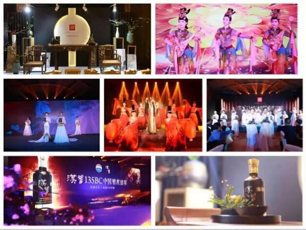 以刚刚在河南郑州结束的雅度盛宴为例:从签到开始就有惊喜,定制的朱雀胸针、手写体名字的专属书签。《汉·华夏韵》、《酱·夜饮》、《传·雅度》等章节循古礼依次呈现,夜饮中,巨大的屏幕上植入《韩熙载夜宴图》的历史图画文本,在影像素材的映衬下,舞蹈演员依时跳跃演绎画作局部,舞台前的人物图画交相衬托,在诗情画意、国之风华洋溢的优雅气氛之中,汉酱135BC深厚的历史底蕴、雅度文化得到了充分的彰显。