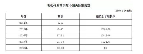 2014年,已经入华两年的老板仔海苔内地销售额3.13亿泰铢,约合人民币6300万元,随后迎来三级跳,2015年~2017年分别收入1.67亿元、3.52亿元、4.21亿元,营收占比从2014年的11.6%到2017年的40%,甚至超过泰国本土销售收入,但2018年老板仔在内地的销售额明显趋缓,仅仅微增5%,2019年上半年老板仔已经遭遇了8.8%的同比下滑。在经历爆发式增长后,老板仔海苔需要探索新周期的发展模式。