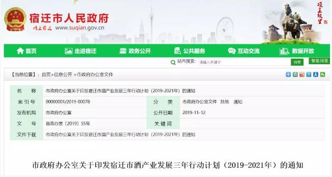宿迁,举全市之力加强酒都建设,以规模化建设抢占白酒产区品牌制高点,缩小弥补营收差距,打造国际的浓香绵柔型白酒产区。这是11月12日,宿迁市政府印发的《宿迁市酒产业发展三年行动计划(2019-2021)》中释放的重要信号。简言之,酒都宿迁真的发力了!