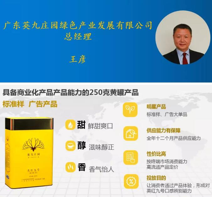 广东英九庄园绿色产业发展有限公司总经理王彦则认为打通大众消费通路,必须赋予茶商业产品的特征。商业特征茶产品应该具备高辨识度、高稳定性;消费者自己可以选择; 消费者自己可以体验; 消费者自己可以评价; 消费者重复获得容易等特质。